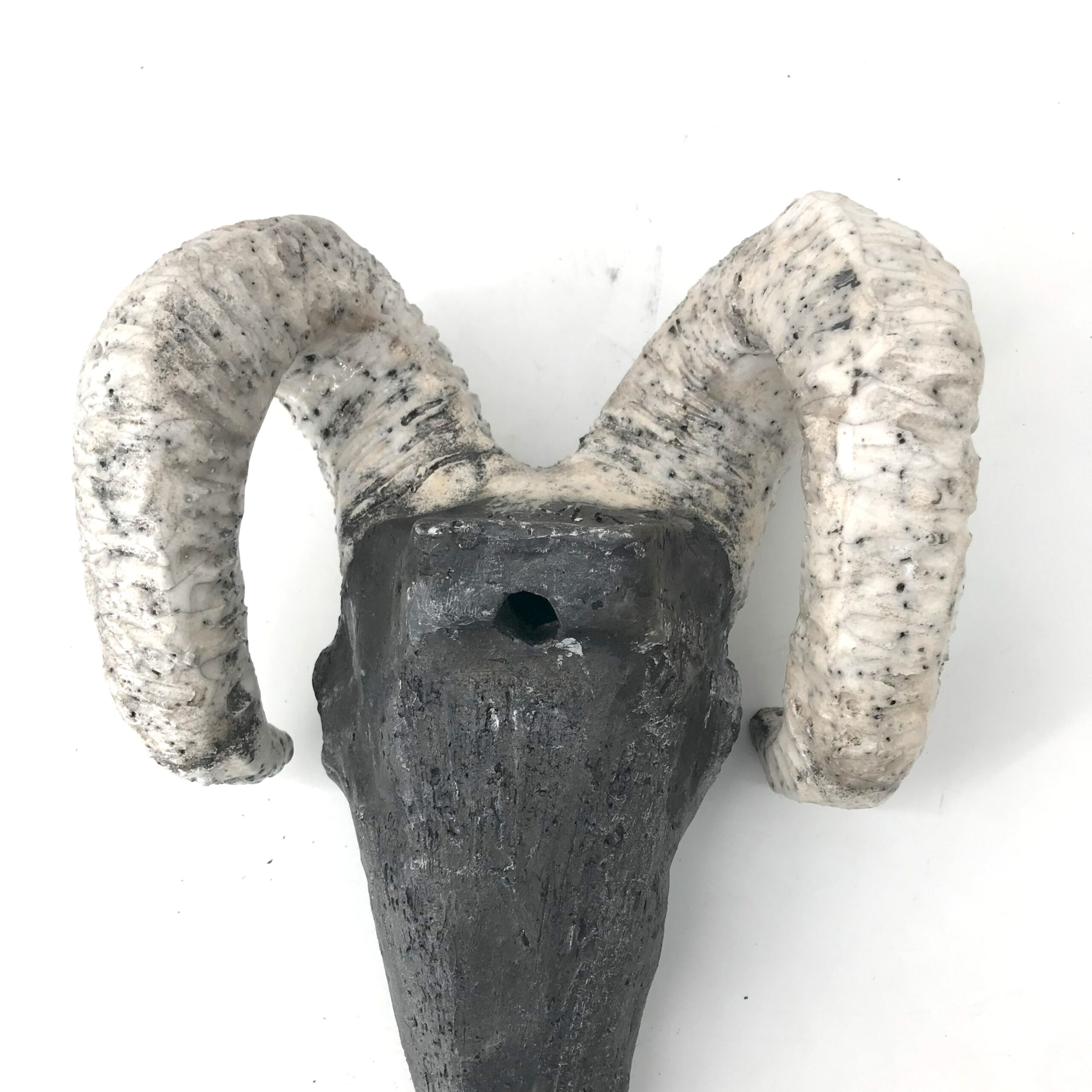 Czaszka “Górskiego Strażnika” to ręcznie wykonana rzeźba ceramiczna w technice raku, która łączy w sobie surowość natury z mistycznym charakterem. Inspirowana symboliką siły i mądrości, przywodzi na myśl pradawne legendy o duchach gór i strażnikach dzikiej przyrody. Charakterystyczne spękania szkliwa, kontrasty czerni i kości oraz geometryczna forma rogów podkreślają unikatowy charakter tej pracy.