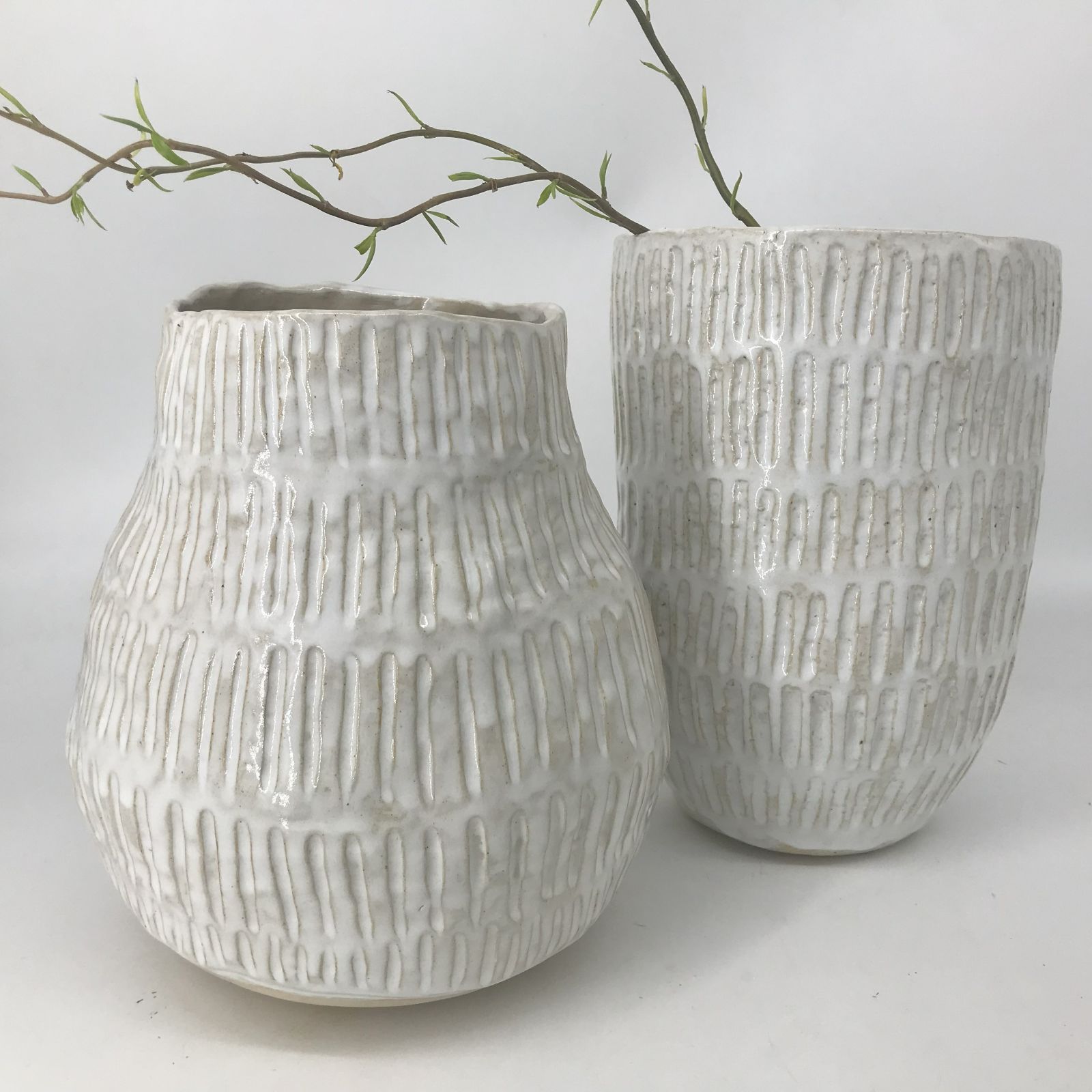 Wazon „SHIRO | miękka linia” to ceramika użytkowa, która wnosi do wnętrza spokój, światło i strukturę. Jego zaokrąglona forma przyciąga wzrok łagodnością, a ręcznie rzeźbiona powierzchnia z delikatnie powtarzalnym wzorem sprawia, że światło zatrzymuje się na każdym detalu. Ten wazon naturalnie wpisuje się w przestrzenie z duszą – zarówno minimalistyczne, jak i bardziej organiczne.